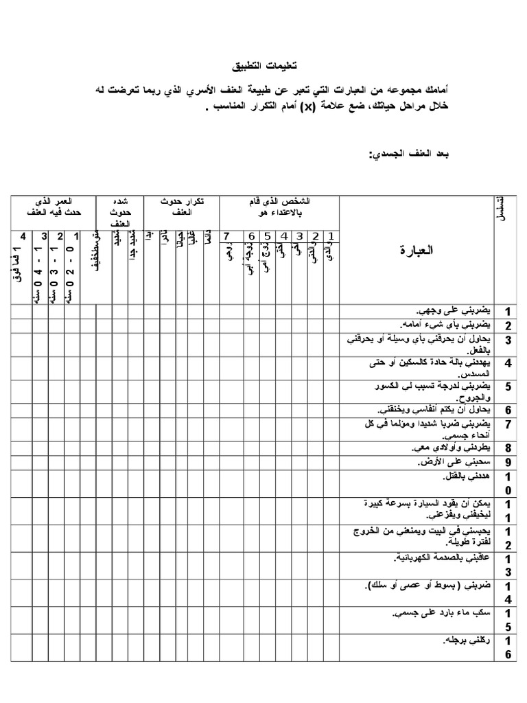 إستبيان العنف الأسري Doc و Pdf