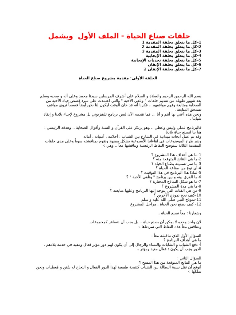 عمرو خالد حلقات صناع الحياه مكتوبه