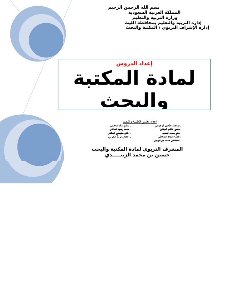تحضير مادة المكتبة والبحث للجميع الصفوف11