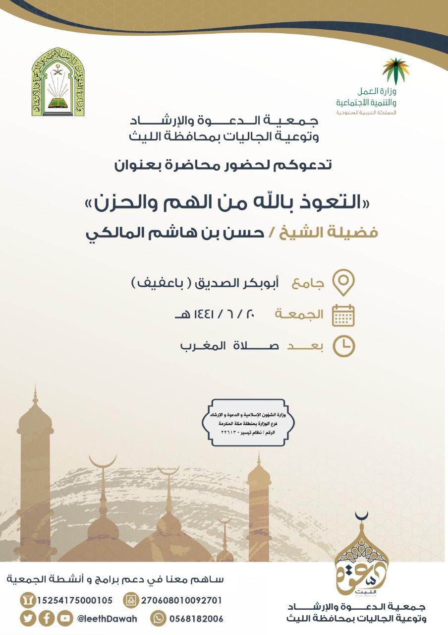 جمعية دعوة الليث On Twitter اليوم الجمعة تدعوكم جمعية الدعوة بالليث لحضور المحاضرة الدعوية التالية فضيلة الشيخ حسن بن هاشم المالكي عنوان المحاضرة التعوذ بالله من الهم والحزن