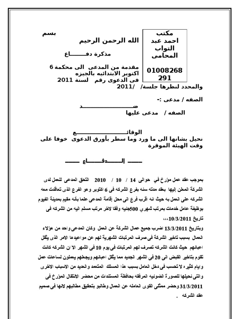 Doc مذكرة دفاع في دعوى مدنية Mazen Abdelkader Academia Edu