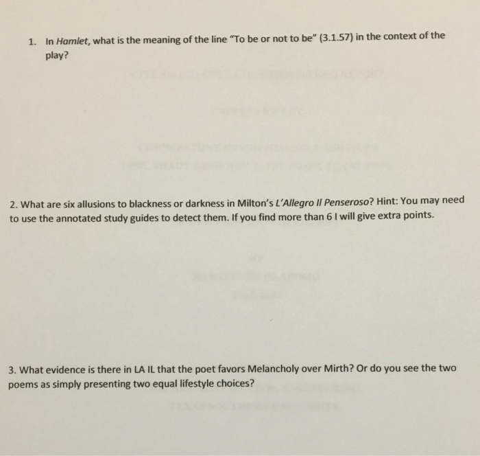 Solved In Hamlet What Is The Meaning Of The Line To Be Chegg Com